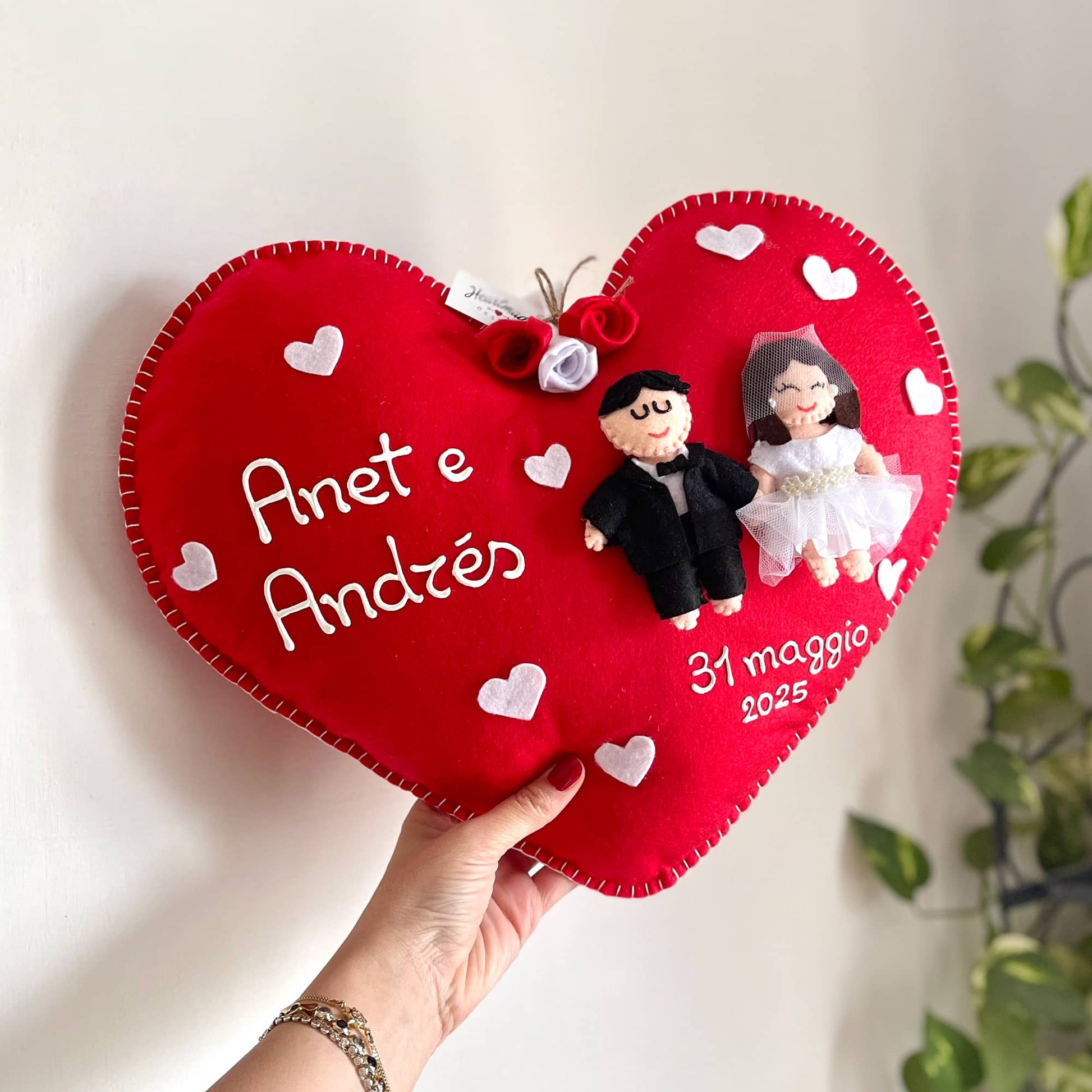 Realizzato interamente a mano in pannolenci. Dimensioni: 40x35cm. (In foto l'uomo ha i capelli neri e la donna castano scuro).