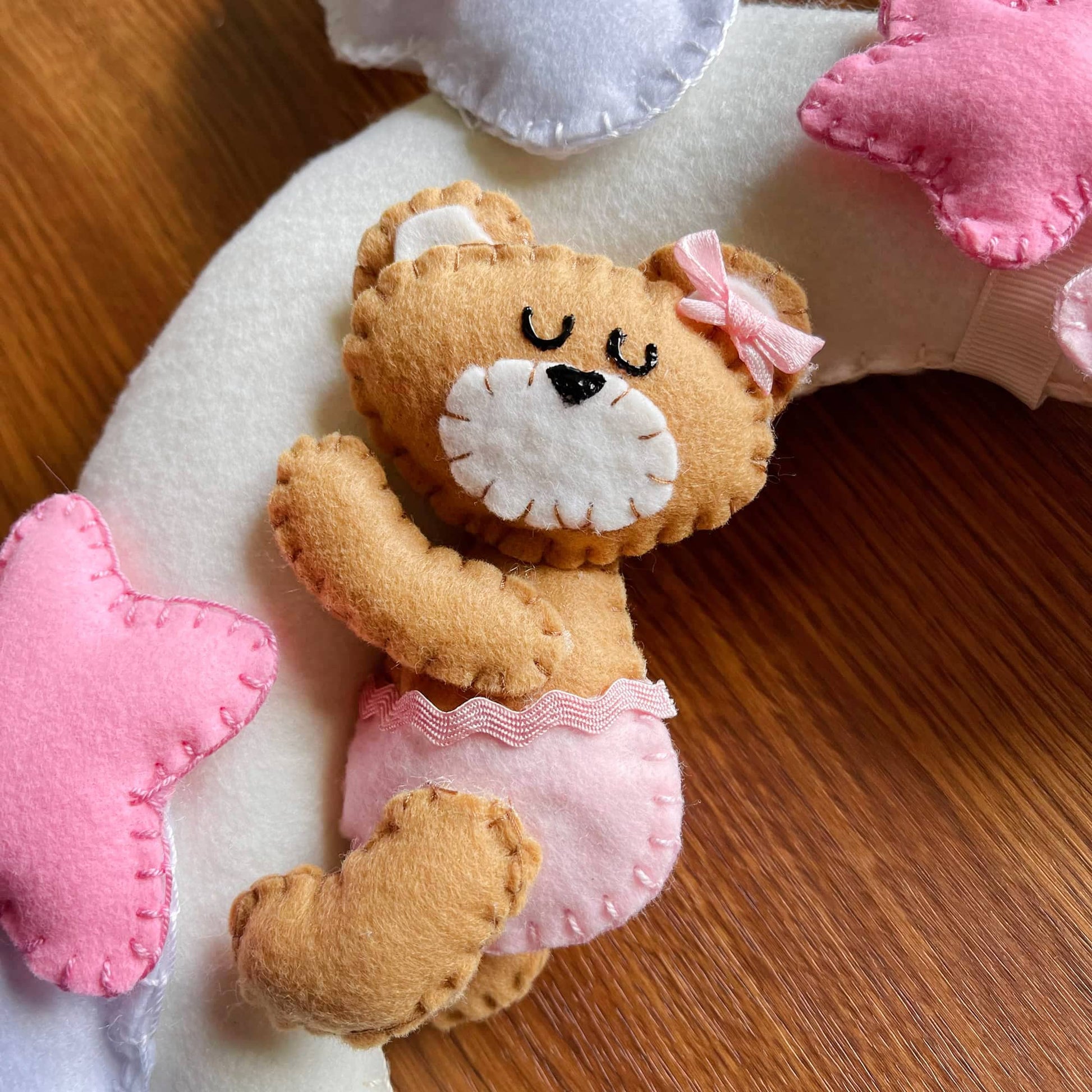Fiocco Nascita Orso su Luna e Nuvole