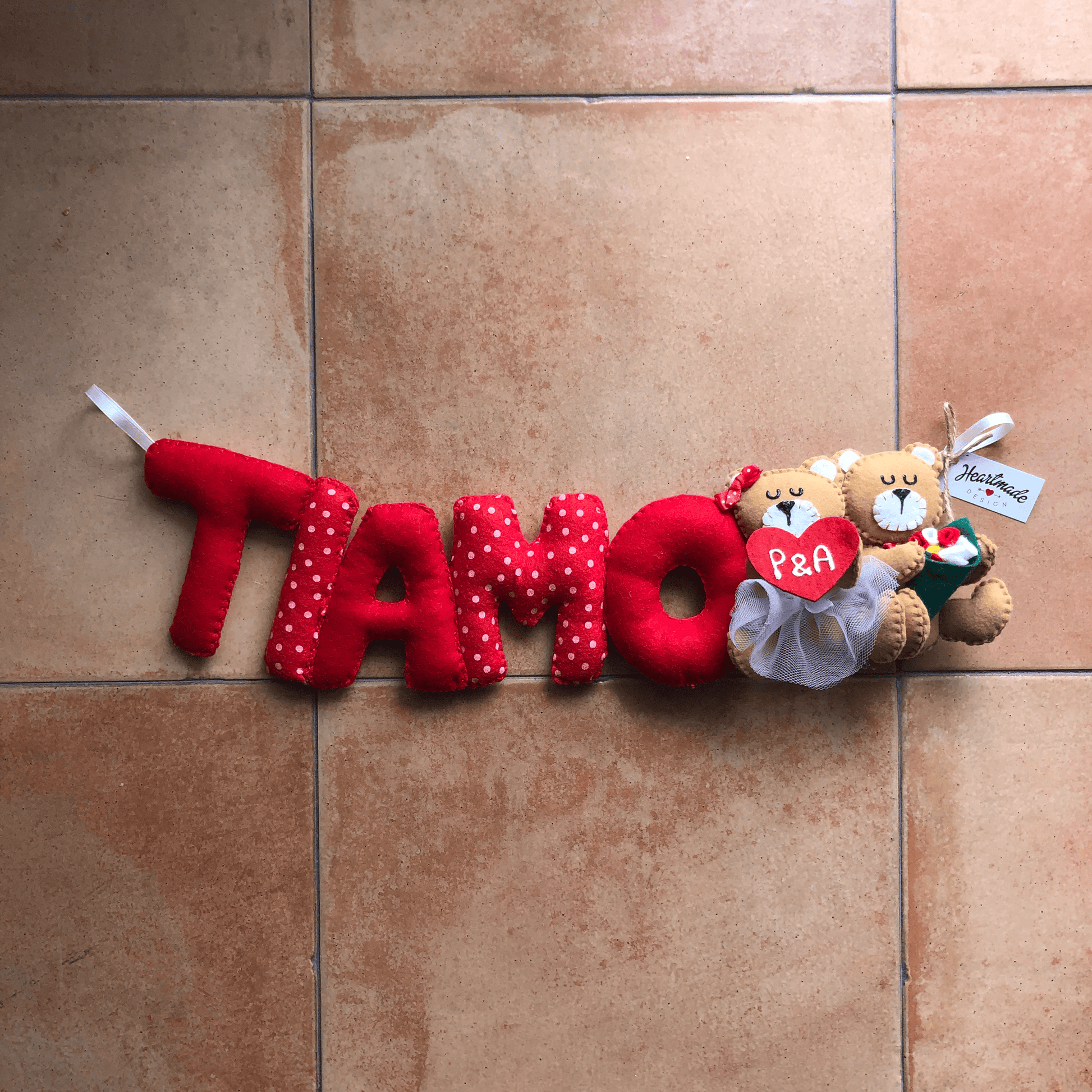 Un modo dolce e personalizzato per dire "Ti amo". 2 modelli disponibili: con omini o con orsetti. Scegli i tuoi colori. Ricorda di specificare le iniziali da scrivere.